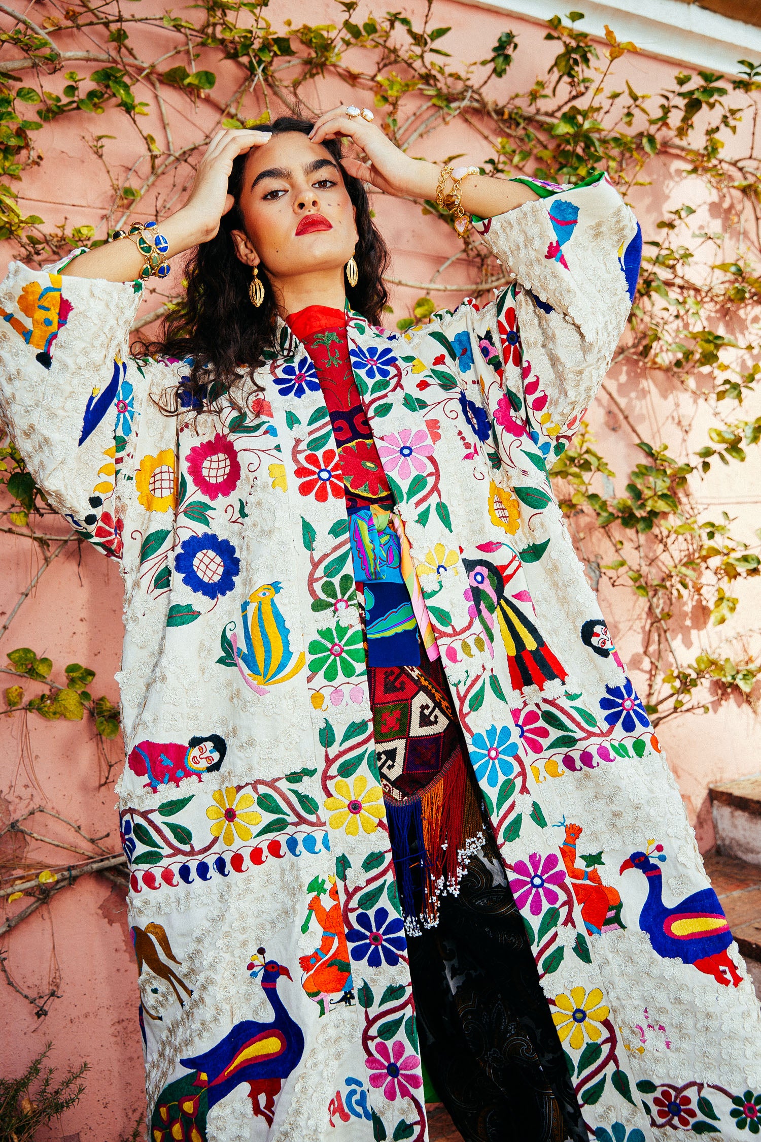 The One-of-a-Kind Classic Reversible Embroidery Coat is a statement piece designed to blend timeless elegance with artisanal heritage. Its kimono-inspired silhouette with wide sleeves drapes fluidly over the body. Crafted from carefully selected vintage embroidered fabrics and enhanced with delicate vintage lace, each coat is entirely unique. Fully lined with vintage jacquard silk, this reversible design offers versatile styling while celebrating the richness of heritage textiles.
