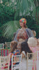 Look Details: One-of-a-kind Super Wide Raglan Dress Organza, One-of-a-kind Elastic Evening Belt, One-of-a-kind Vintage Straw Bag