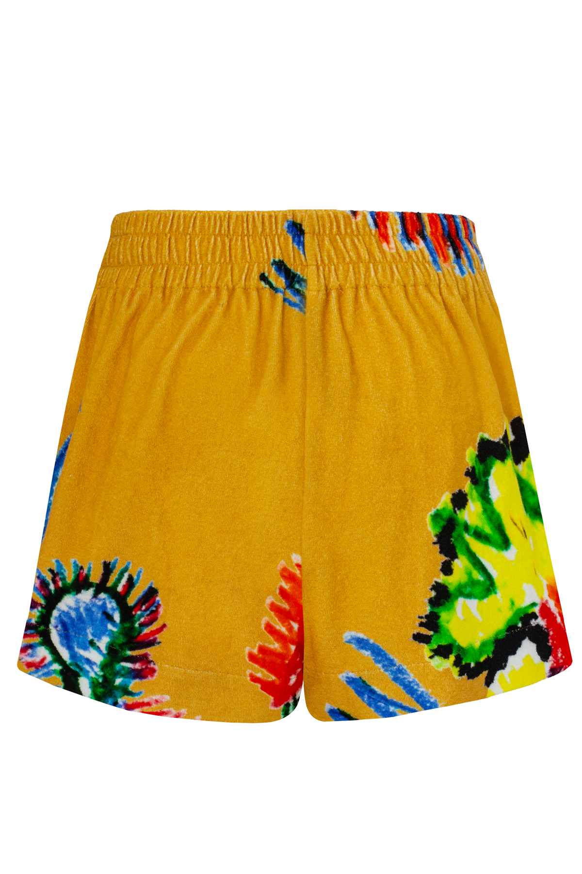 Our Tropica Fruta Beach Shorts Palmira are the perfect shorts for a day by the seaside. Their relaxed fit combined with their elastic waistband ensure that your body is perfectly staged even before you go swimming. Made from 100% cotton terry and designed in our Peponi Green & Peponi Yellow pattern, these shorts are simply to fall in love with. Combine them with our eye-catching swimwear to complete the look.