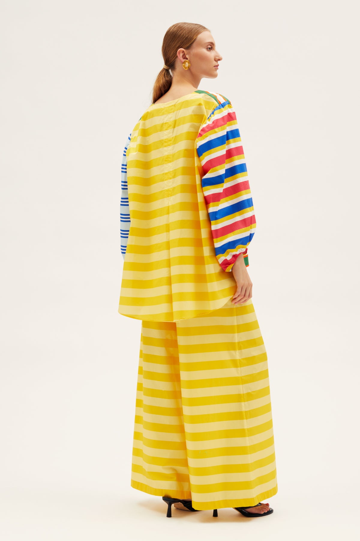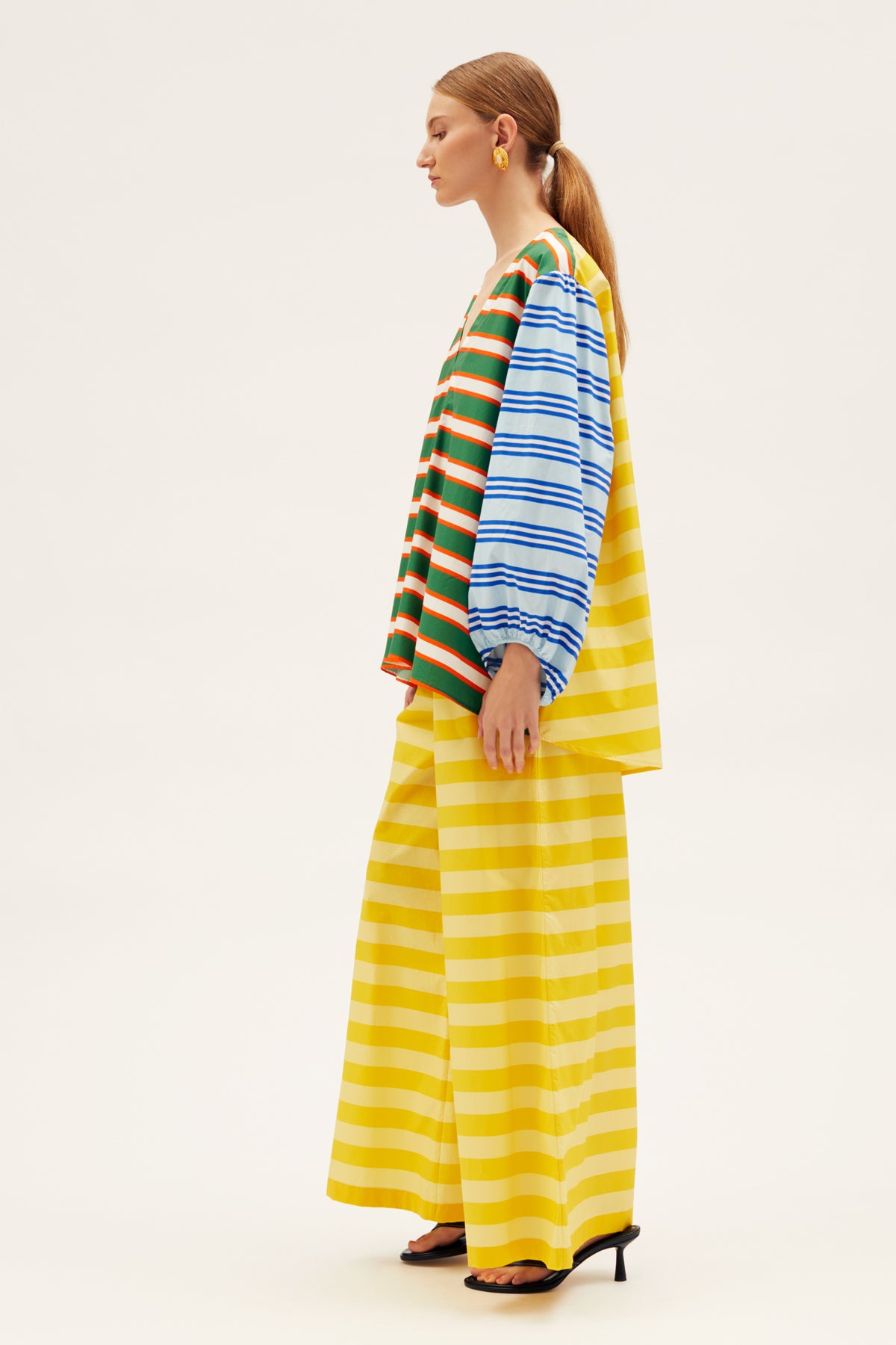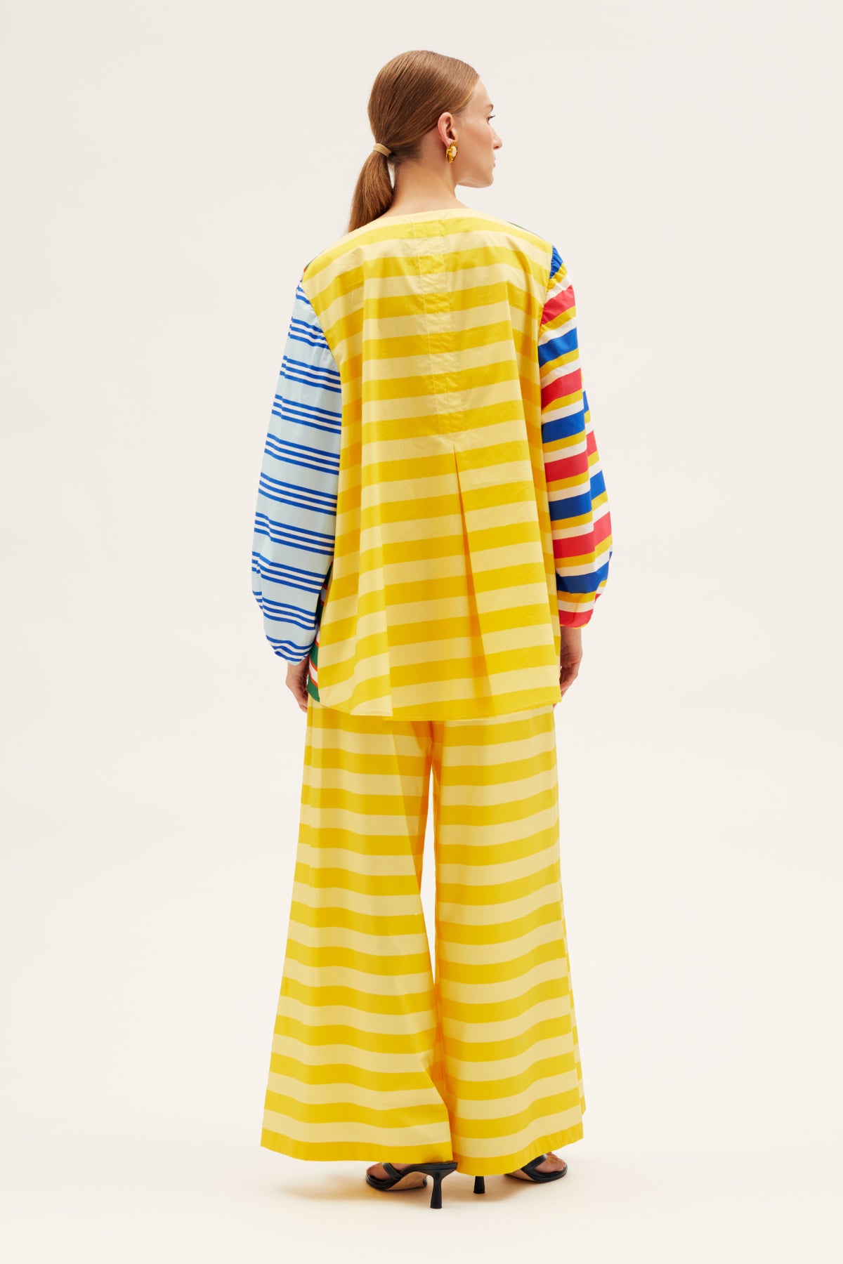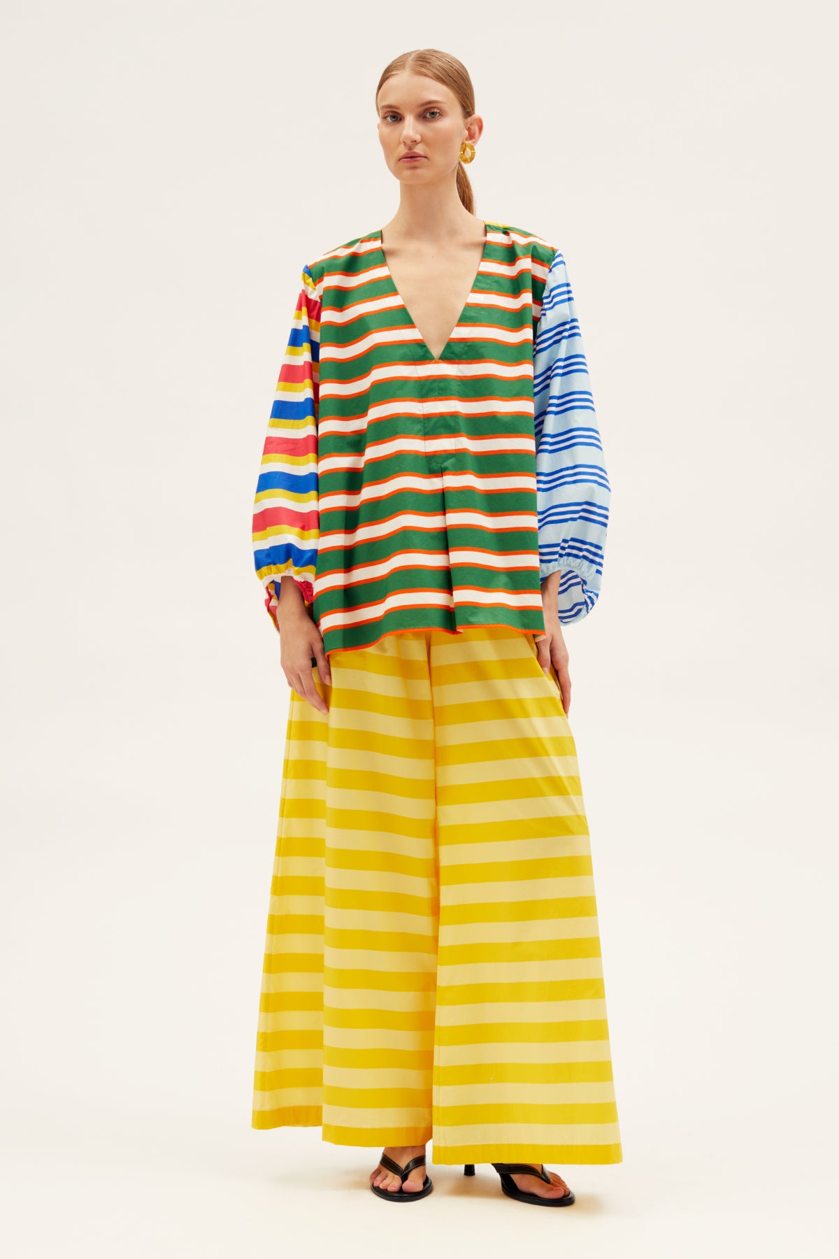 Indulge in luxury with our Tropica Fruta Swing Blouse Mila, featuring four seasonal Tropica Fruta prints. The plunging v-neck and delicate ruching at the wrists make a statement on this sophisticated and understated piece. Create the perfect look by pairing it with vintage jewelry and matching pants.